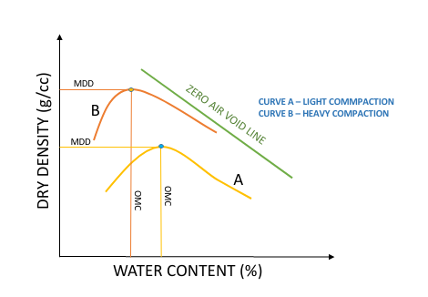 For a given water content, theoretical maximum density is obtained, when there are no air voids (i.e., degree of saturation is equal to 100 %).