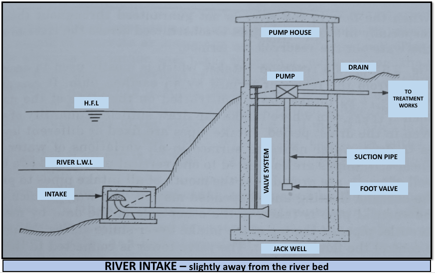 The lowest entry is placed at the low water level of the river, so as that the water is out there within the jack well during summer season also when river carries minimum discharge.