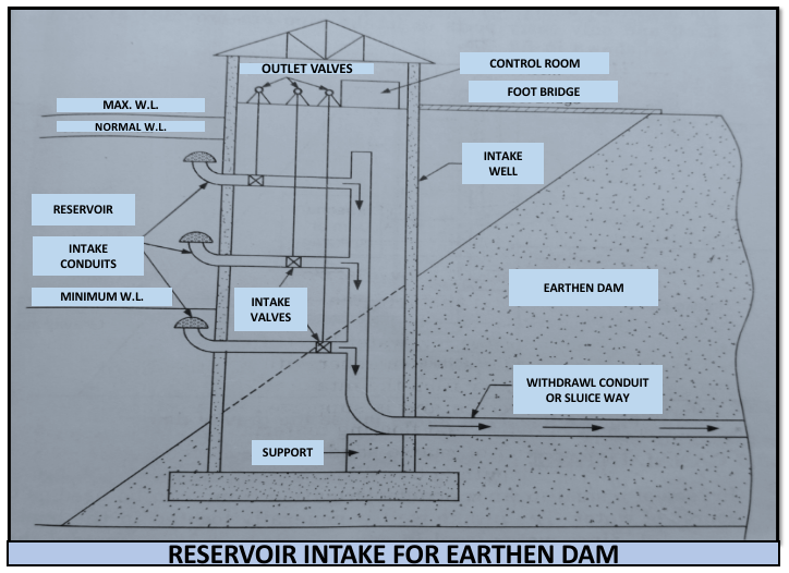 It essentially consists of an intake tower constructed on the slope of the dam at such a neighborhood from where intake can draw sufficient quantity of water even within the driest period.